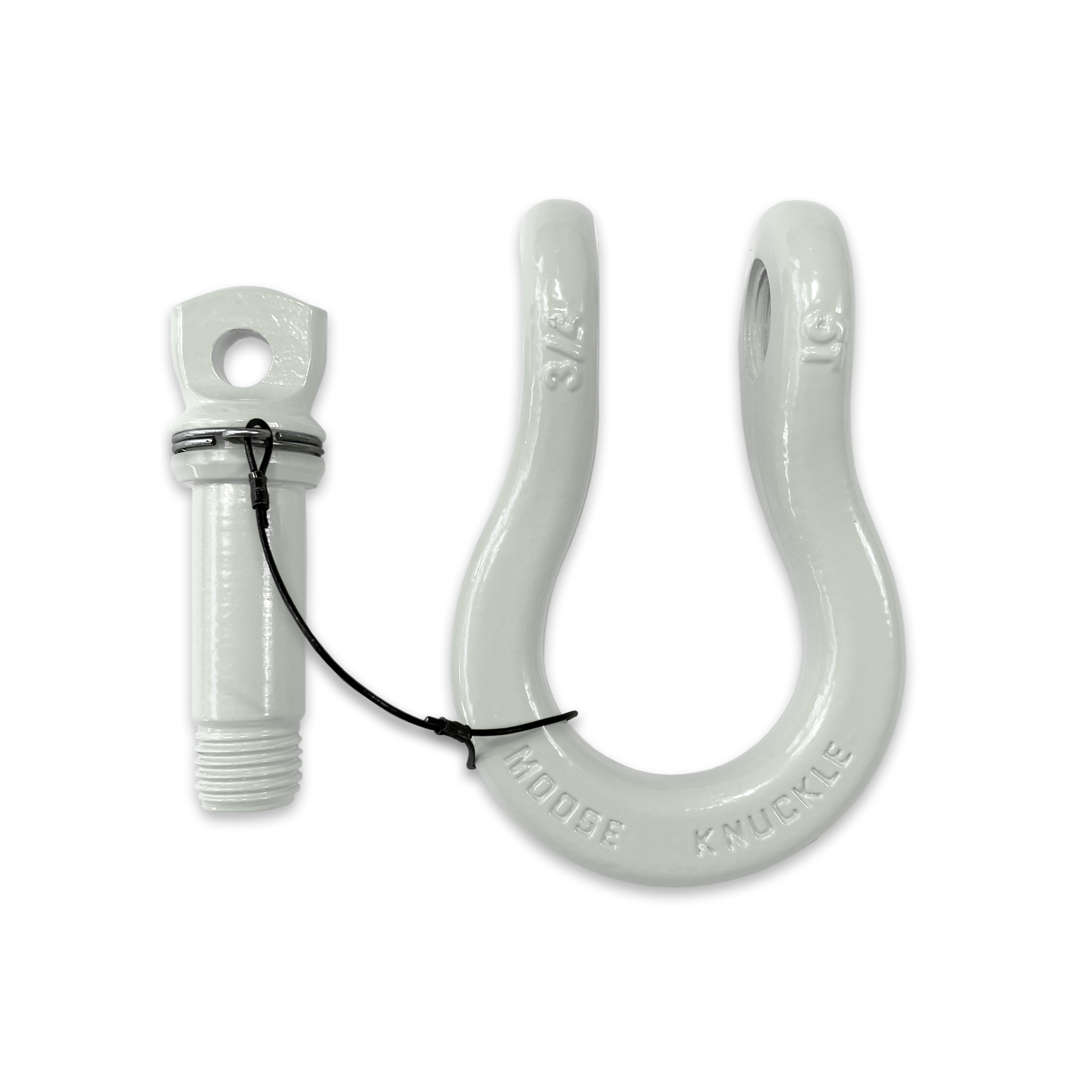A twist (pun intented) on a standard D-ring bow recovery shackle our new pure white B'oh shackle incorporates an innovative Two Finger Spin Pin design to keep your pins and shackles joined together out on the trail. No more lost pins!