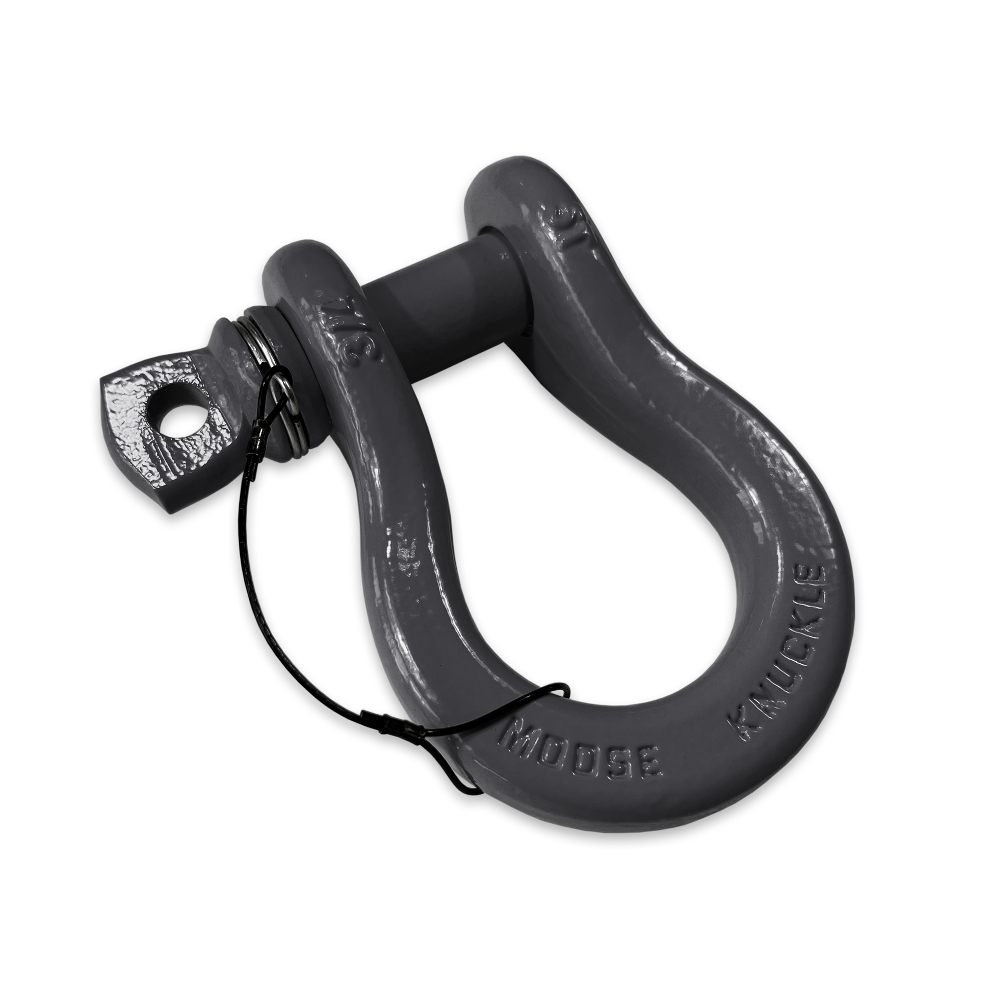 The Moose Knuckle Offroad B'oh Shackle fits any bumper shackle mount or tow shackle receiver hitch bracket mount with a 7/8" (0.875") pin hole and a mount width of 1-1/4" (1.25") or less.