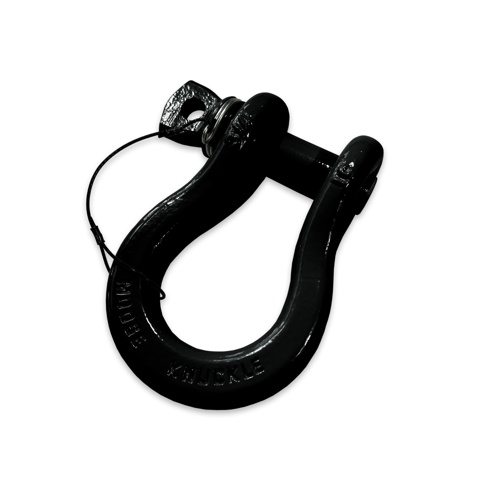 A twist (pun intented) on a standard D-ring bow recovery shackle our new black hole B'oh shackle incorporates an innovative Two Finger Spin Pin design to keep your pins and shackles joined together out on the trail. No more lost pins!