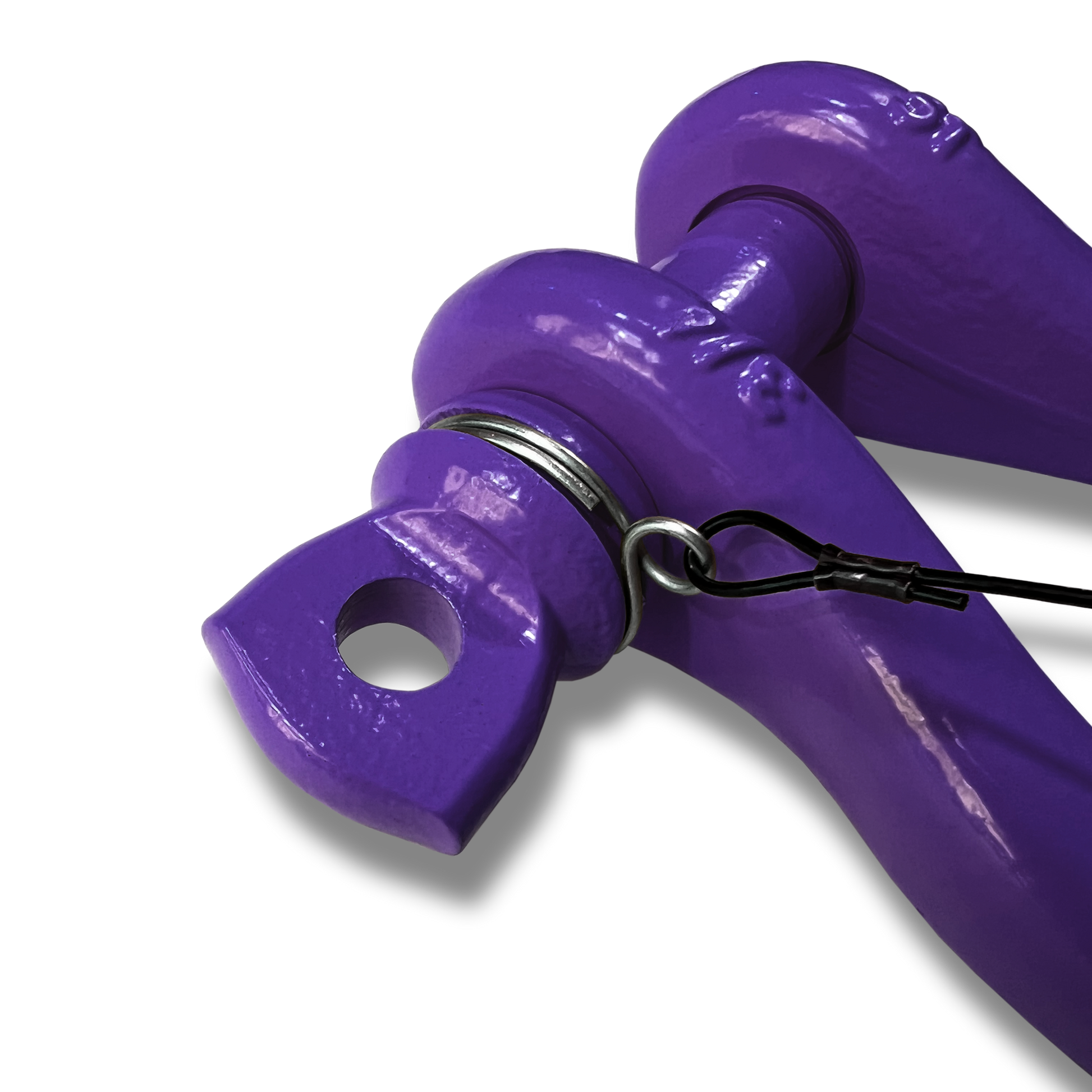 A twist (pun intented) on a standard D-ring bow recovery shackle our new grape escape B'oh shackle incorporates an innovative Two Finger Spin Pin design to keep your pins and shackles joined together out on the trail. No more lost pins!