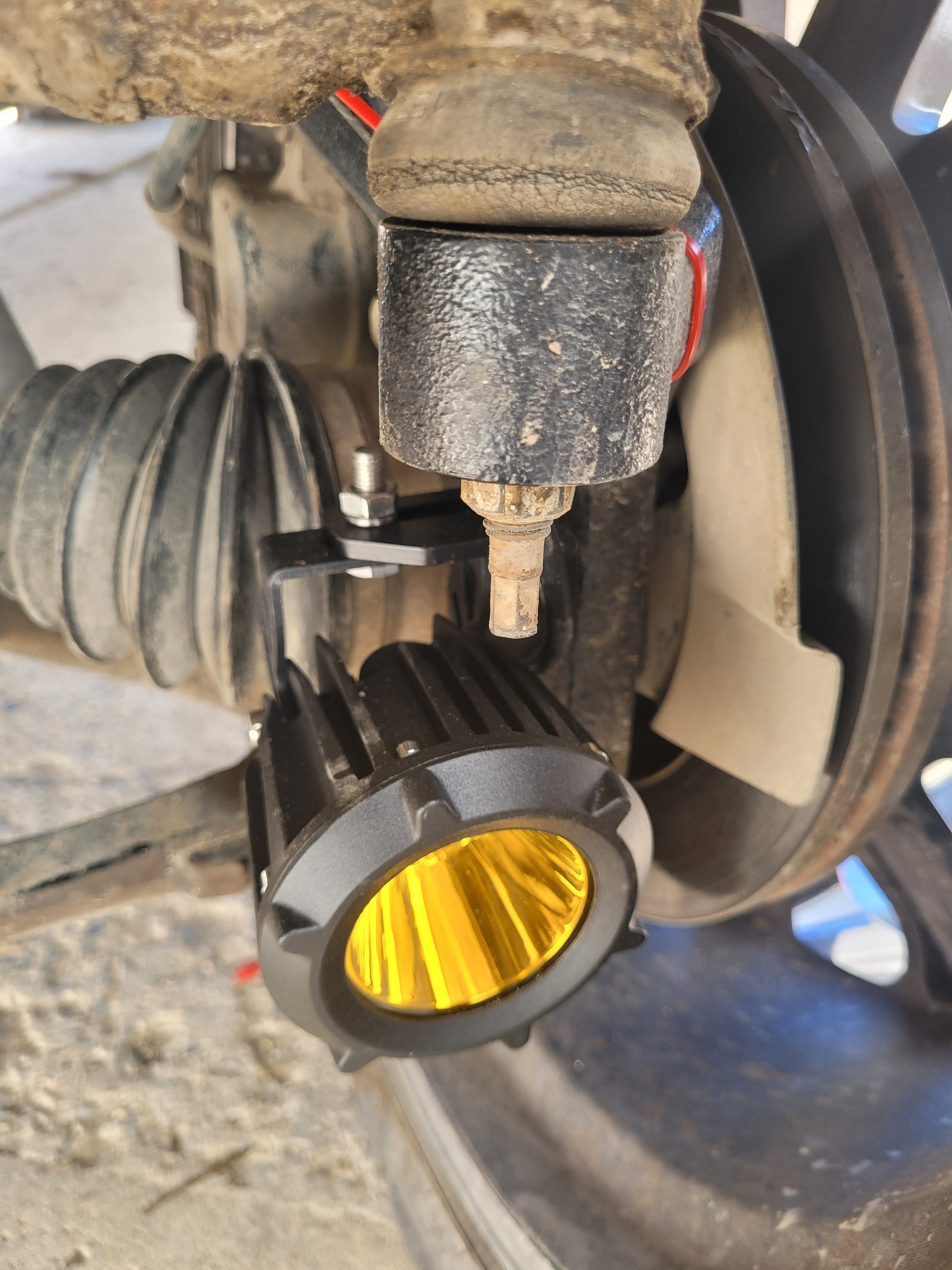 Knuckle Pod Mounts are revolutionary Steerable Light Brackets that are engineered to bolt to your steering knuckles to enhance your on and off-road visibility and safety by synchronizing your fog lights with your steering wheel movements. This allows better and wider visibility when turning in dark areas (especially with tinted windows), flexing out on obstacles, or simply driving down back roads at night.