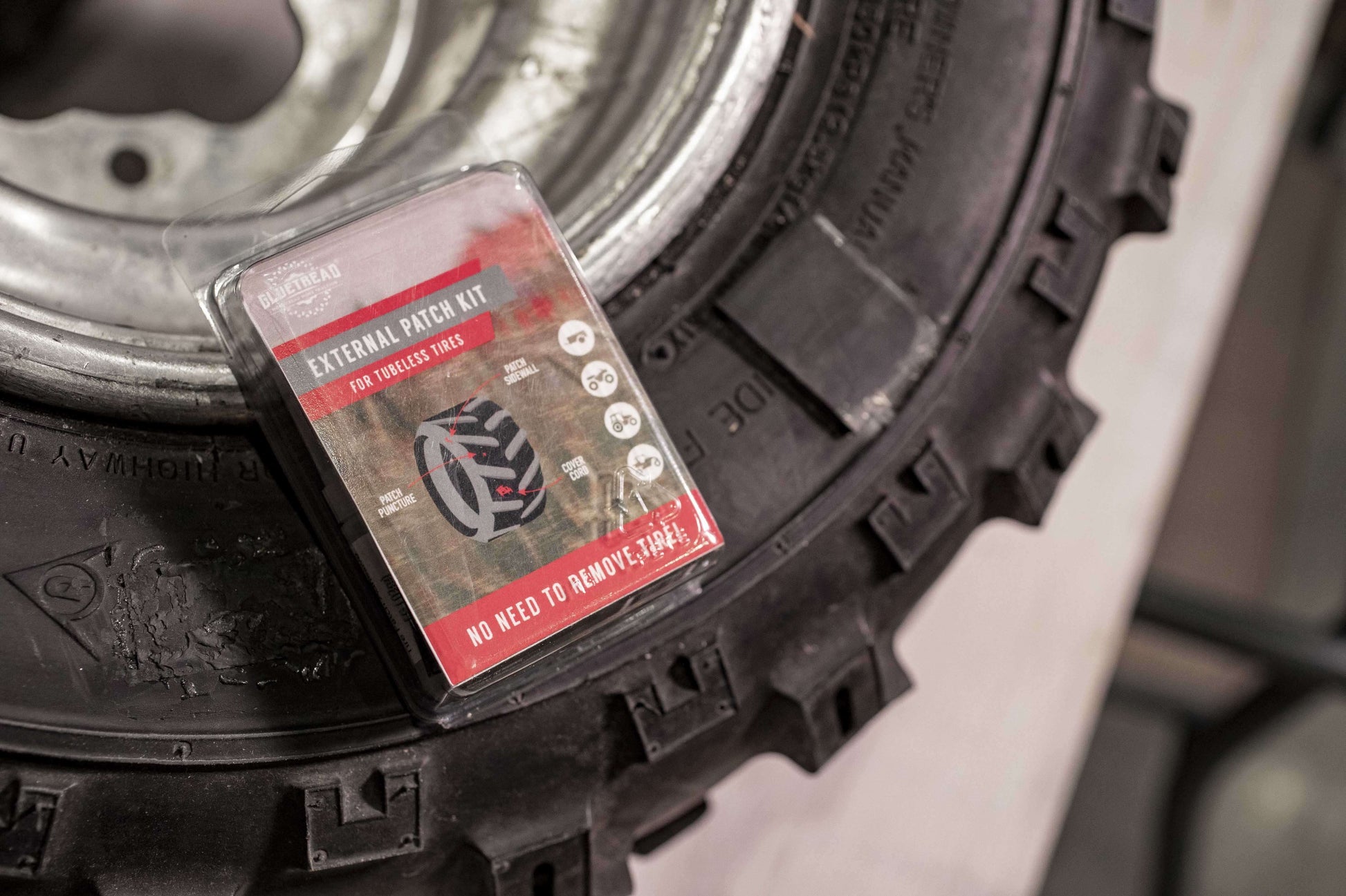 The GlueTread External Patch Kit is your go-to solution for patching slices or punctures in the sidewall or tread of your tire. This compact kit makes repairing your tire in the field easy—no need to remove it from the vehicle!