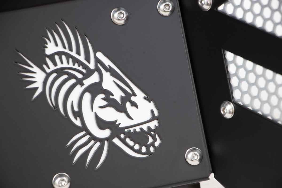 - Fishbone logo laser cut into inner fender