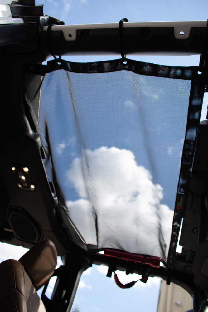 Enhance your driving experience in the 2018 - Current JLU Wrangler Unlimited with the Fishbone Offroad Full Sun Shade. Designed to accommodate both hard and soft top models, this sun shade also caters to various sound bar options, making it a versatile and valuable addition to your Jeep.