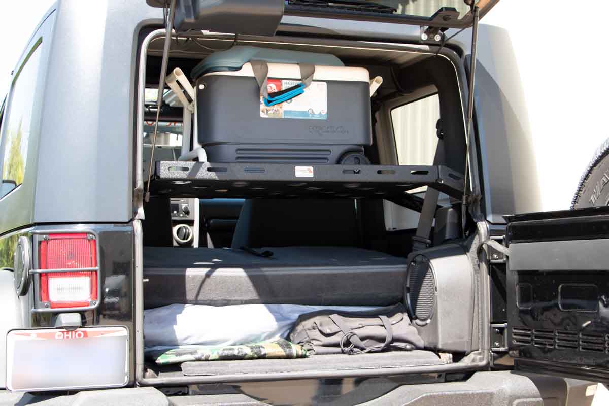 Furthermore, installation necessitates drilling and modification to both your hardtop and the vehicle itself. While it's usable with either hard or soft tops, soft top models will not be able to put their tops down with this rack installed. Keep in mind that due to the product's size, there may be additional shipping costs. The JK Interior Storage Rack is your ideal solution, whether you're running errands around town or conquering rugged trails, and when paired with our popular JK Storage Bins FB25081 (sold separately), you'll maximize every inch of your Jeep's storage space.