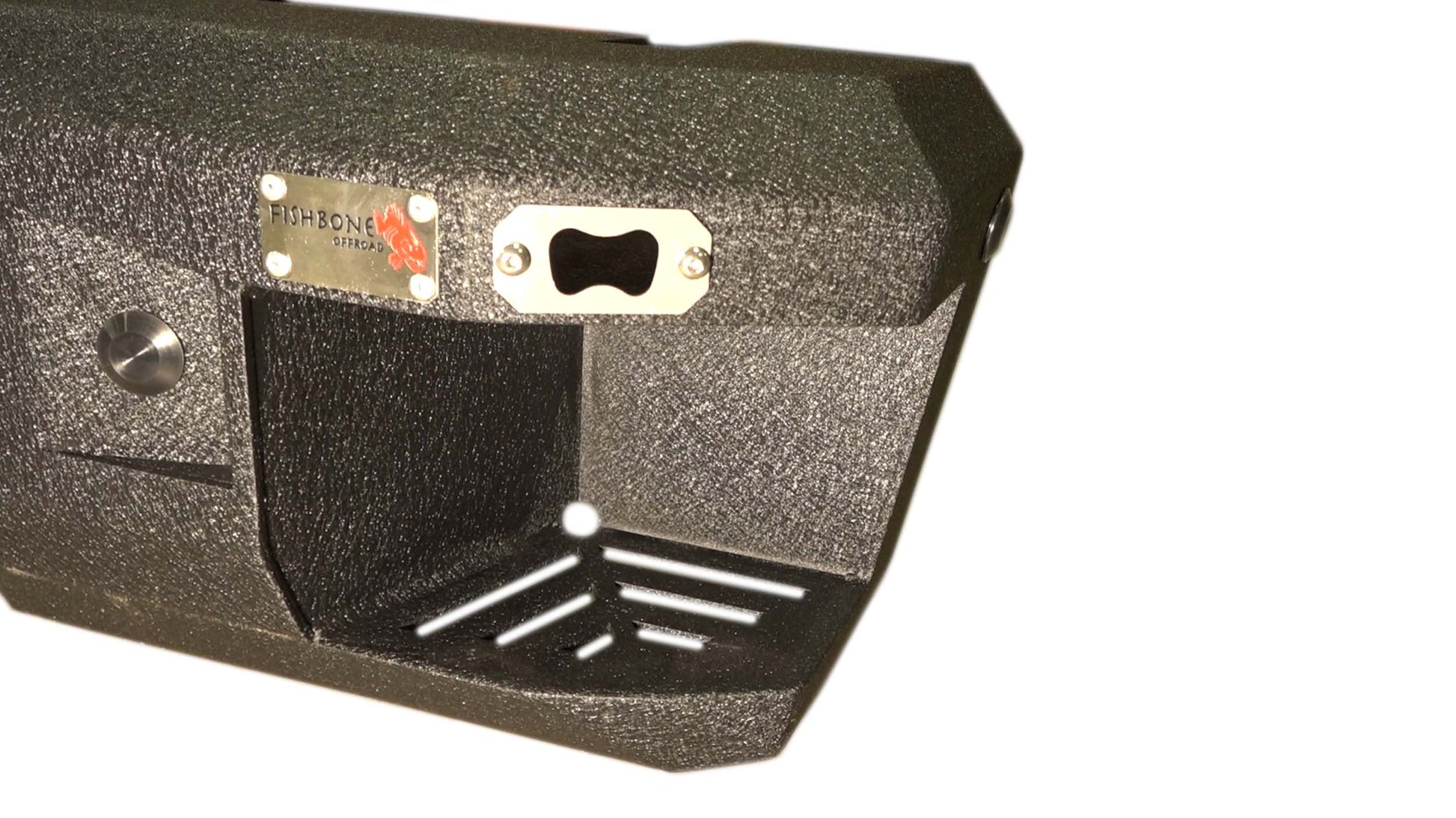 Give your F150 a utility upgrade with our Rear Recovery Bumper. It retains your factory trailer connector, backup sensors, and license plate lights, and provides much needed steps to allow easy access to your truck bed or utility rack. It's perfect for any work horse, or a neighborhood tailgater with its featured bottle opener! Get to work with Fishbone confidence.