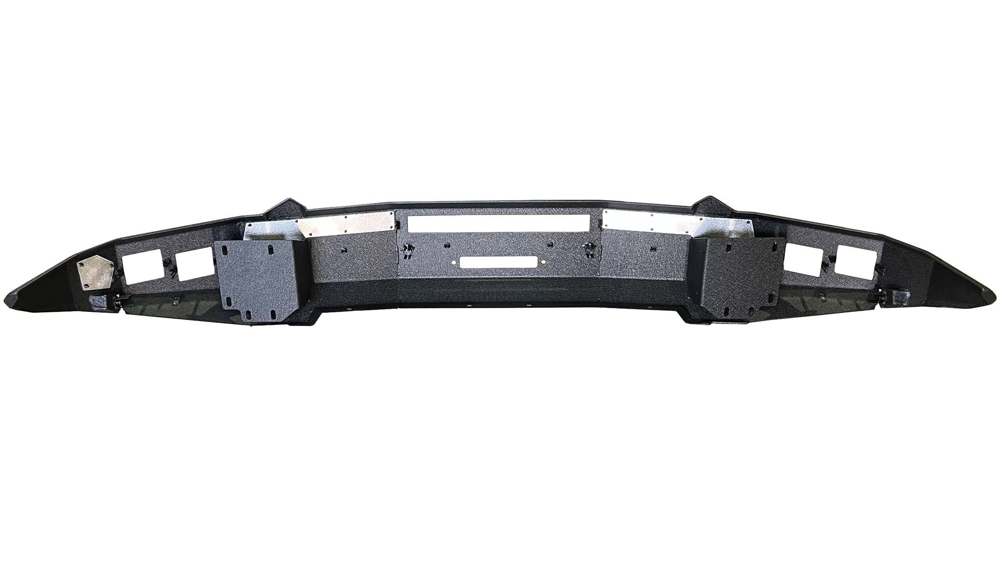 Installation? It's a breeze. With a simple bolt-on process, it mounts perfectly in the front bumper location. This bumper isn't just about looks; it's packed with features to make your off-road adventures smoother. From its slim-fit design that accommodates 4 pod lights and a 22-inch light bar to its readiness for a winch, it's designed to meet all your off-road requirements. For those unforeseen hitches on your expeditions, D-ring mounts are at the ready for recovery, made even stronger with heavy mounting plates integrated right into them. These mounts are tailored to use 3/4" D-Rings, ensuring you're never left stranded.