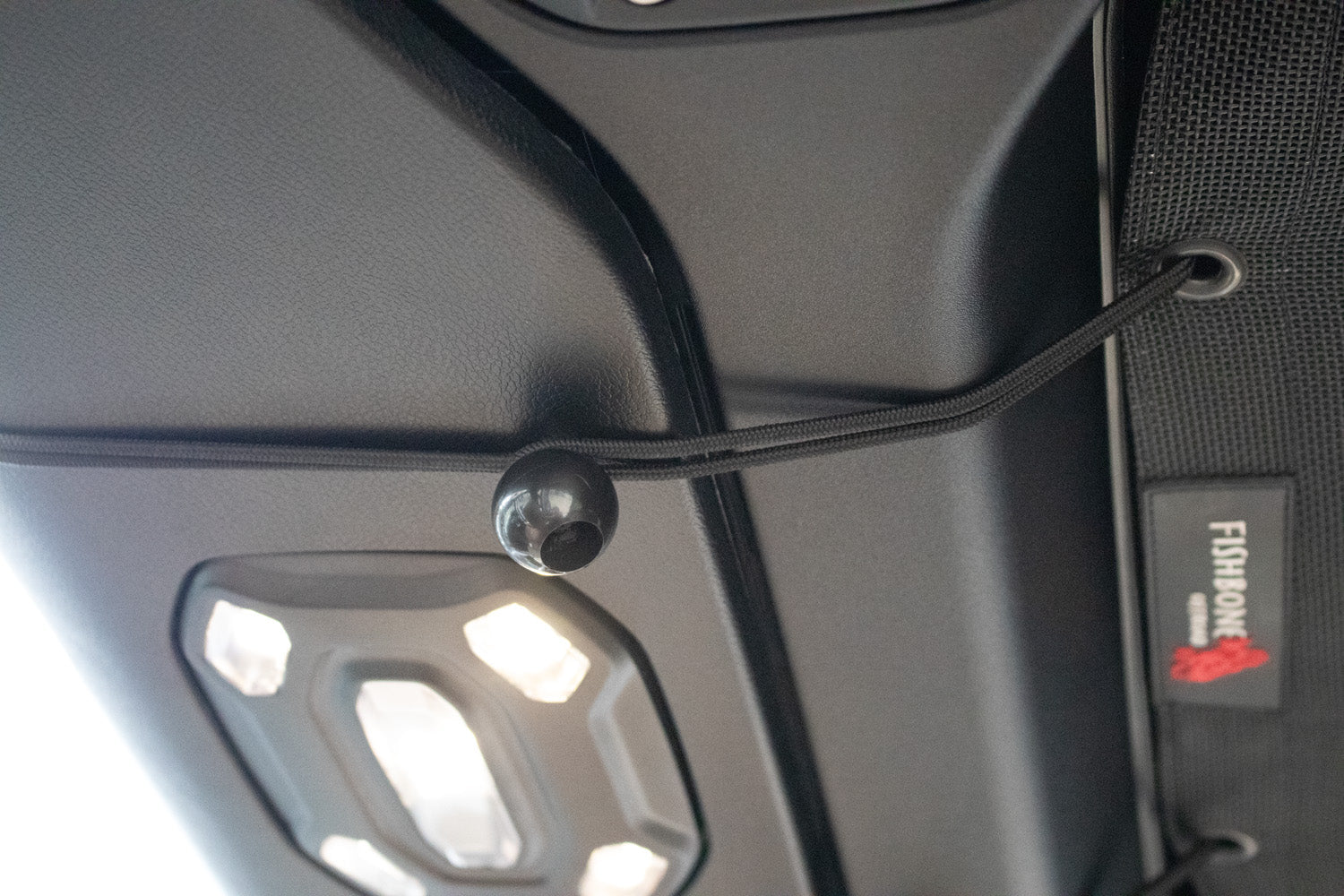 Constructed from durable and resistant Nylon Mesh, the Rear Sun Shade fits securely within the roll bars and over the sound bar, providing a cooling cover that shields you and your passengers from the sun's intense rays. This versatile accessory comes with 12 bungee cords, allowing you to adjust the tightness to your preference, ensuring a perfect fit and the ideal head height. With your soft or hard top installed, this shade permits convenient storage of light items on top, enhancing your overall Jeep experience. Manufactured in the U.S.A., Fishbone Offroad delivers a high-quality solution for sun protection and style, enabling you to enjoy every ride with added comfort and functionality.