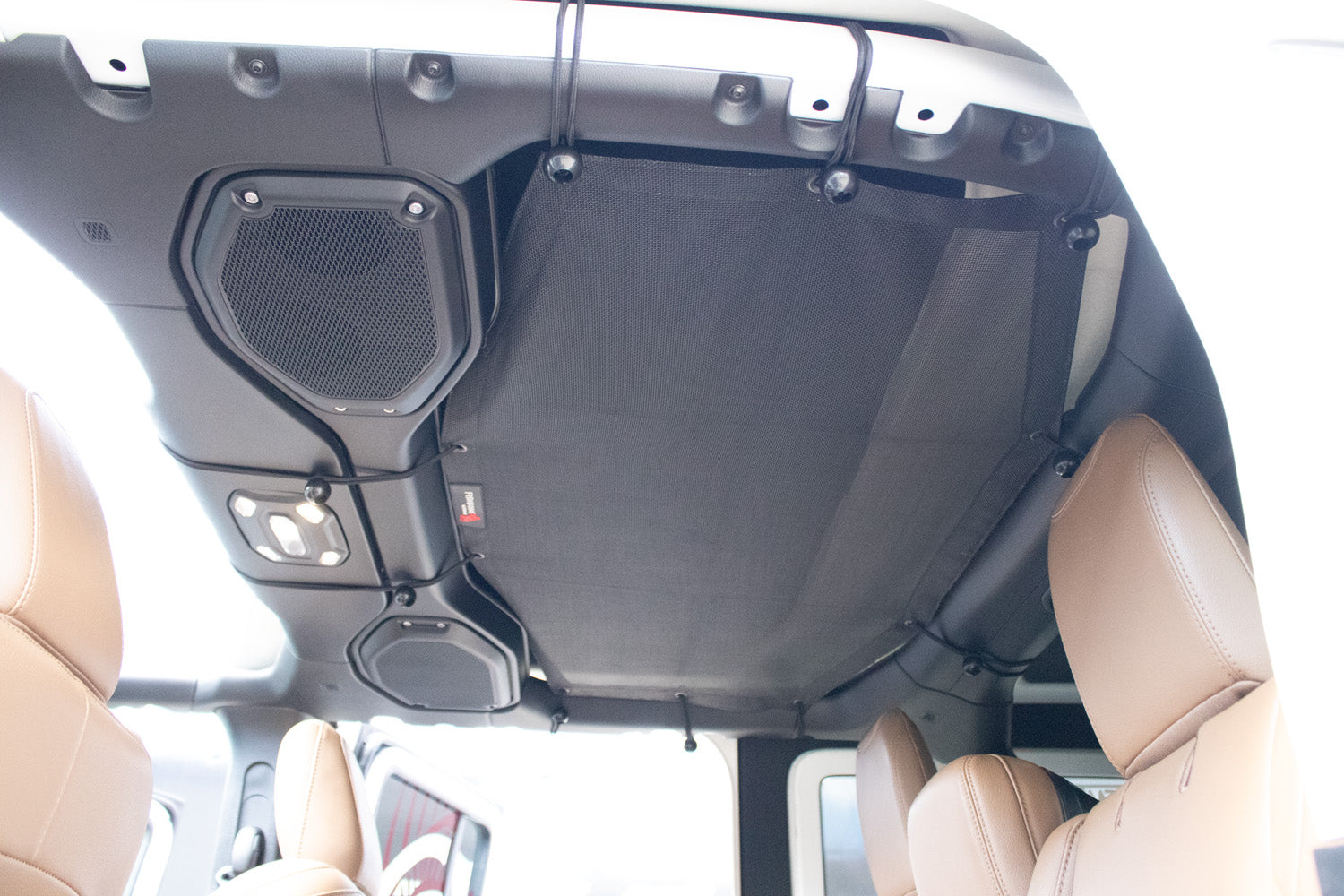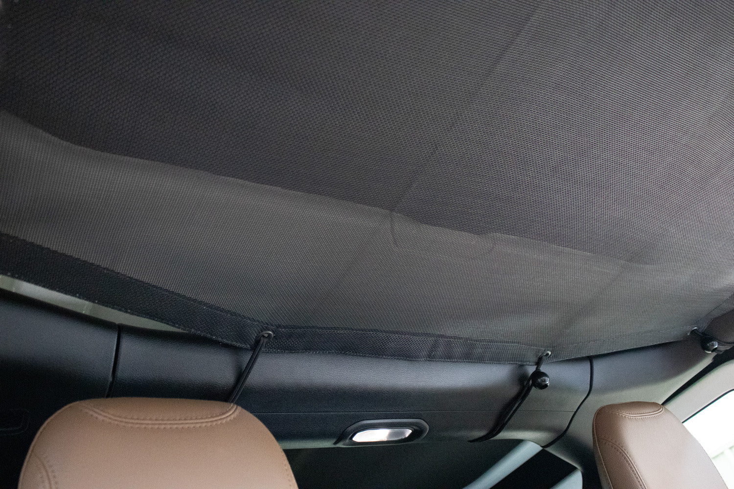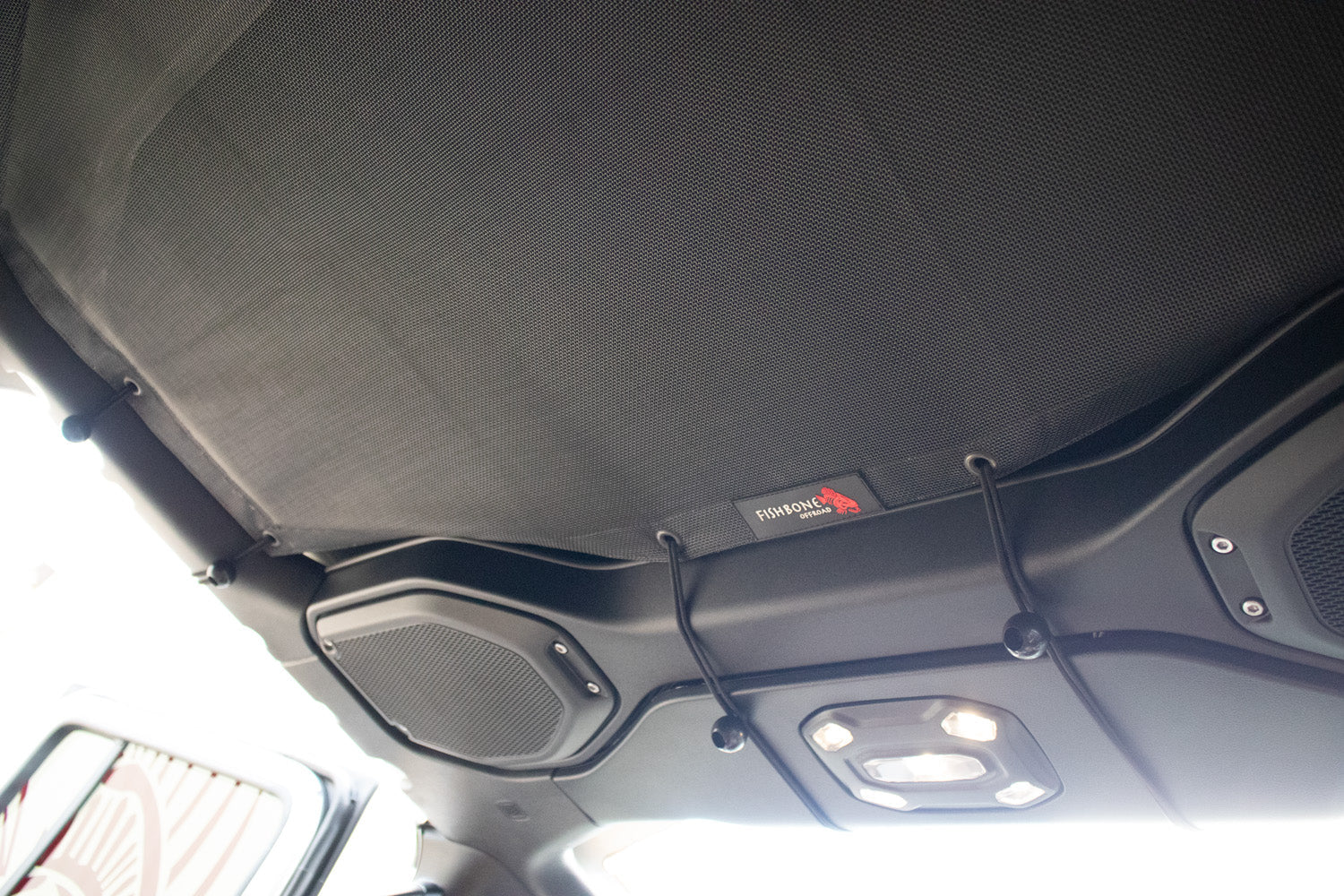 Constructed from durable and resistant Nylon Mesh, the Full Sunshade fits securely within the roll bars and over the sound bar, providing a cooling cover that shields you and your passengers from the sun's intense rays. This versatile accessory comes with 23 bungee cords, allowing you to adjust the tightness to your preference, ensuring a perfect fit and the ideal head height. With your top installed, this shade permits convenient storage of light items on top, making your Jeep experience that much better. Manufactured in the U.S.A., Fishbone Offroad delivers a high-quality solution for sun protection and style, enabling you to enjoy every ride with added comfort and functionality.