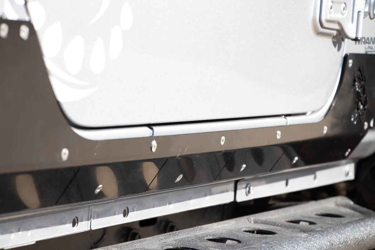 Elevate the protection and aesthetics of your 2018 to current Jeep JL Wrangler Unlimited, specifically designed for 4-Door models, with Fishbone Offroad Scale Armor. This pair of robust side armor panels is constructed from heavy-duty 3/16-inch steel, meticulously engineered to provide formidable protection for your vehicle's sides during your off-road escapades.