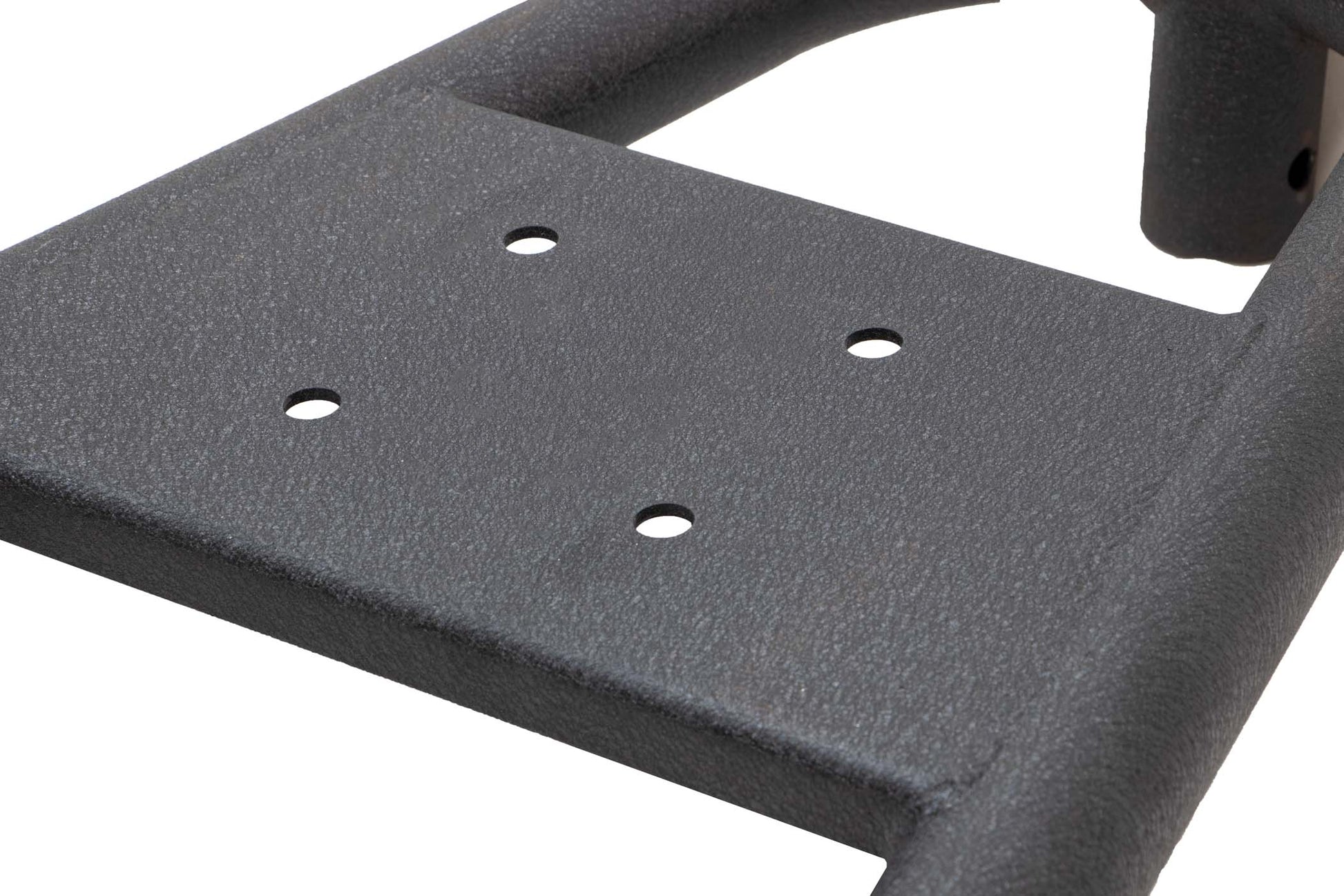 Built with precision from 1/8in. black powder-coated steel, this Jeep Gladiator spare tire carrier promises durability. Plus, it comes outfitted with slots for bungee cords, amplifying its utility quotient. Whether you're strapping down additional cargo or ensuring that everything stays in place while off-roading, these slots add a layer of convenience to your adventures.