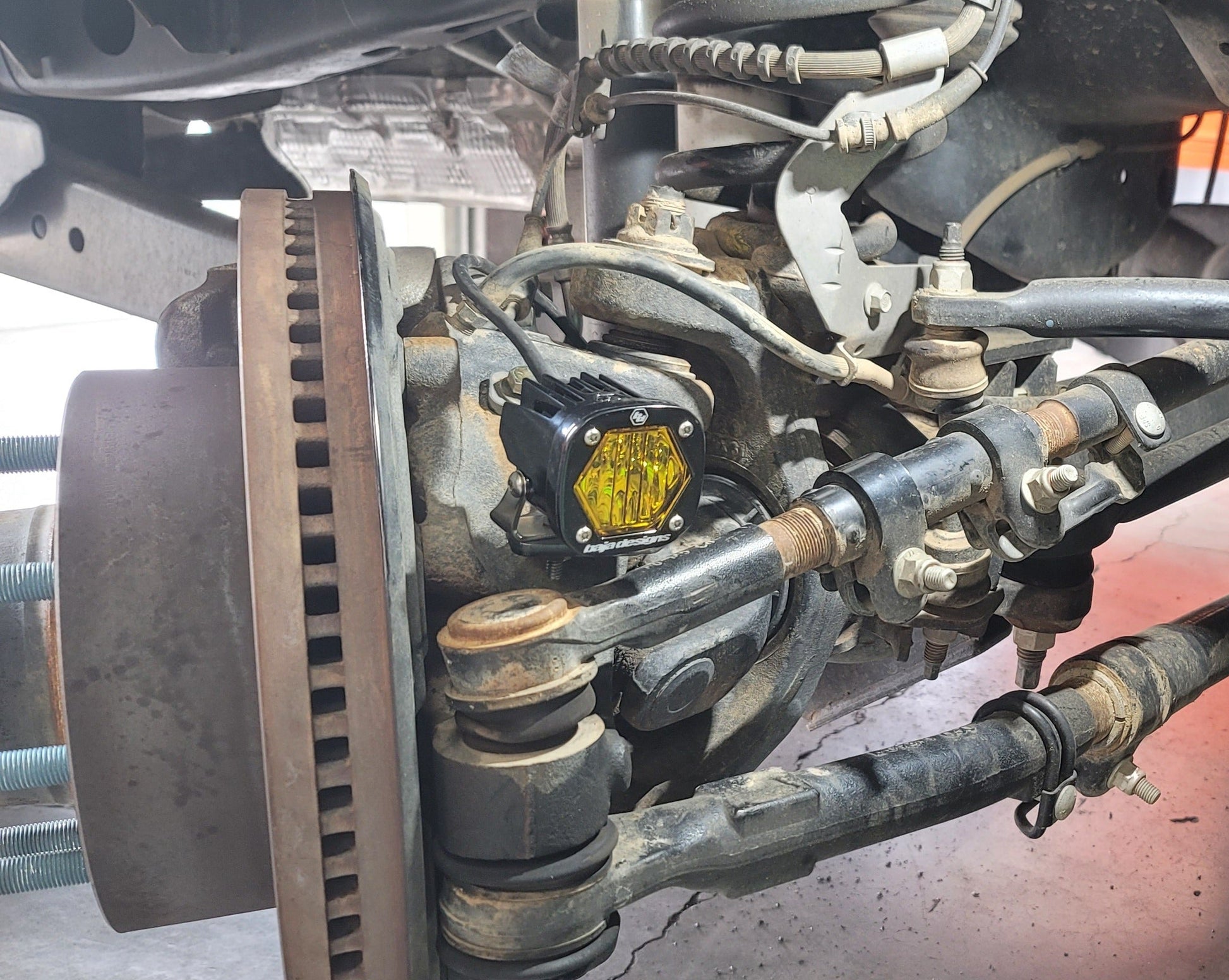 Knuckle Pod Mounts are revolutionary Steerable Light Brackets that are engineered to bolt to your steering knuckles to enhance your on and off-road visibility and safety by synchronizing your fog lights with your steering wheel movements. This allows better and wider visibility when turning in dark areas (especially with tinted windows), flexing out on obstacles, or simply driving down back roads at night.