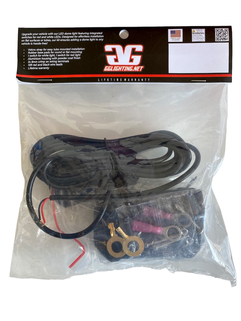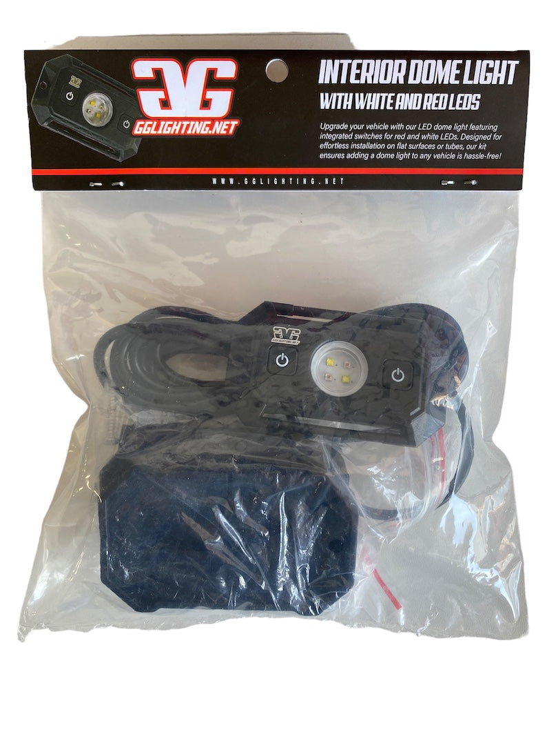 Upgrade your vehicle with our LED dome light featuring integrated switches for red and white LEDs. Designed for effortless installation on flat surfaces or tubes, our kit ensures adding a dome light to any vehicle is hassle-free!