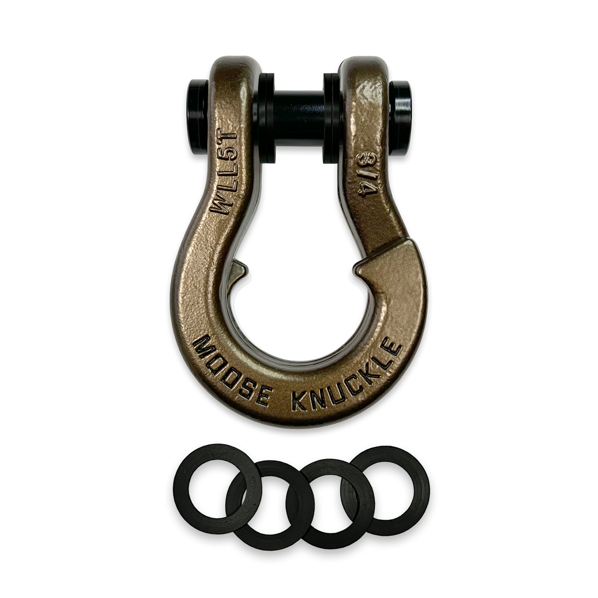 Each shackle includes four durable nylon shackle isolators. Two 3.0mm thick washers and two 2.0mm thick washers help you center your Jowl shackle on any width bumper shackle mount, gusset, winch rope, or shackle receiver.