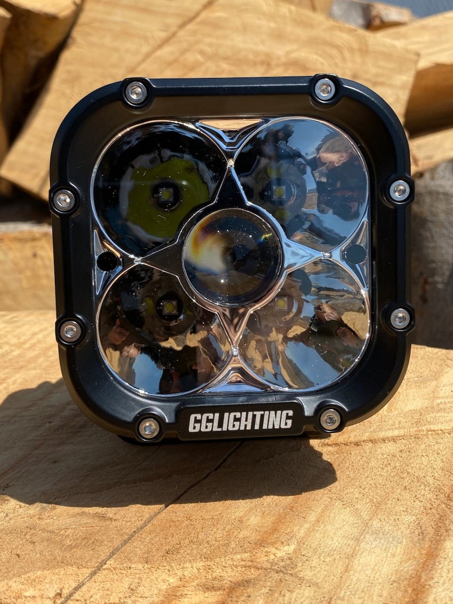 Our XR40 pod features a 25 watt high intensity LED in the center with a projector to give you an extreme range of long distance powerful light. This is used in combination with 4 10 watt LED's that emit a driving beam pattern. The XR40 pod can also use our optional combo lens, this creates a flood/spot beam to give you a wider field of vision.
